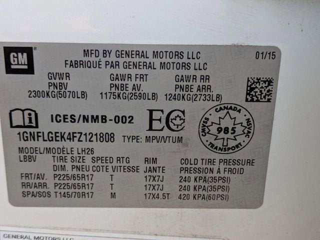 17 Aluminum Wheels, 8-Way Power Driver Seat Adjuster, 8-Way Power Front Passenger Seat Adjuster, Automatic Climate Control, Automatic temperature control, Backup Camera, Bluetooth® For Phone, Chevrolet MyLink, Equipment Group 2LT, Front fog lights, Front Halogen Fog Lamps, Fully automatic headlights, Heated Driver & Front Passenger Seats, Heated front seats, Inside Self-Dimming Rear-View Mirror, Pioneer Premium 8-Speaker System, Power Convenience Package, Power Programmable Rear Liftgate, Radio: Chevrolet MyLink Audio System, Remote Start, SiriusXM Satellite Radio, Steering wheel mounted audio controls, Universal Home Remote.